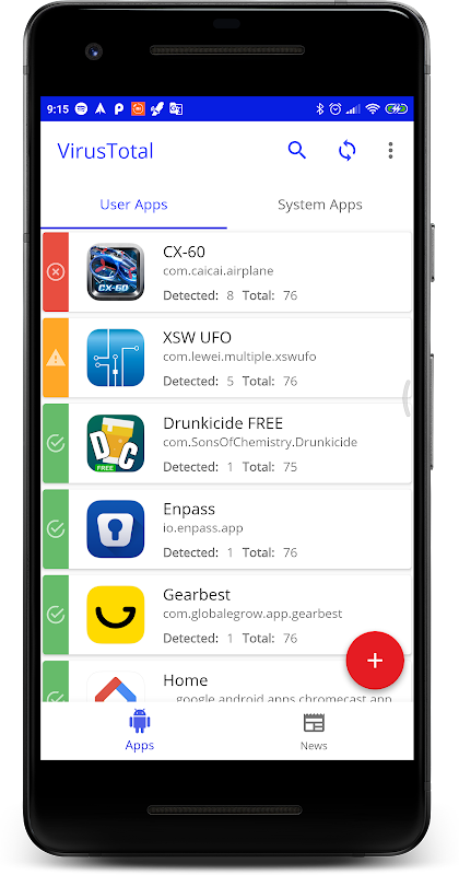 VirusTotal মোবাইল VirusTotal (http://www.virustotal.com) আপনার বিরুদ্ধে অ্যান্ড্রয়েড ফোন ইনস্টল করা অ্যাপ্লিকেশনের পরীক্ষা করা হবে. এটা আপনার ফোনে ম্যালওয়্যার সম্পর্কে (ভাইরাস, ট্রোজান, ওয়ার্ম) আপনাকে অবহিত করা এবং আপনি যারা Virustotal কোনো অজানা অ্যাপ্লিকেশন আপলোড করতে পারবেন হবে. অন্য কথায়, Android এর জন্য যারা Virustotal কোনো অবাঞ্ছিত কন্টেন্ট ঝিমুনি, আপনার অ্যাপ্লিকেশন 50 টিরও বেশি অ্যান্টিভাইরাস দ্বারা স্ক্যান পাবেন.