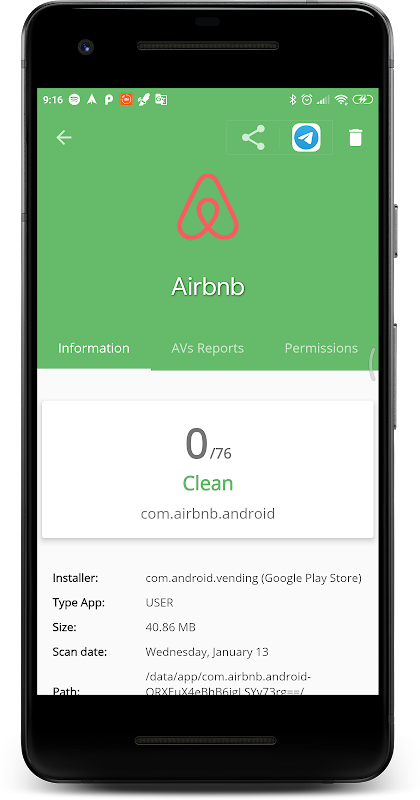 এই নতুন সংস্করণে, ইনস্টল করা সমস্ত অ্যাপ্লিকেশন বিশ্লেষণ ছাড়াও এবং তারা যারা Virustotal মধ্যে না হলে তাদের আপলোড করা, যে কোন ফাইল বা URL অ্যাপ্লিকেশনটিতে পুরো বা অন্য অ্যাপ্লিকেশন থেকে হয় বিশ্লেষণ করা যেতে পারে.