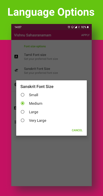🚀 বিষ্ণু সহস্রনামম হিন্দি (সংস্কৃত), তামিল, এবং ইংরেজি - 3 বিভিন্ন ভারতীয় ভাষায় উপস্থাপিত হয়। অ্যাপ্লিকেশনটি আপনার পছন্দগুলি মনে রাখবে।