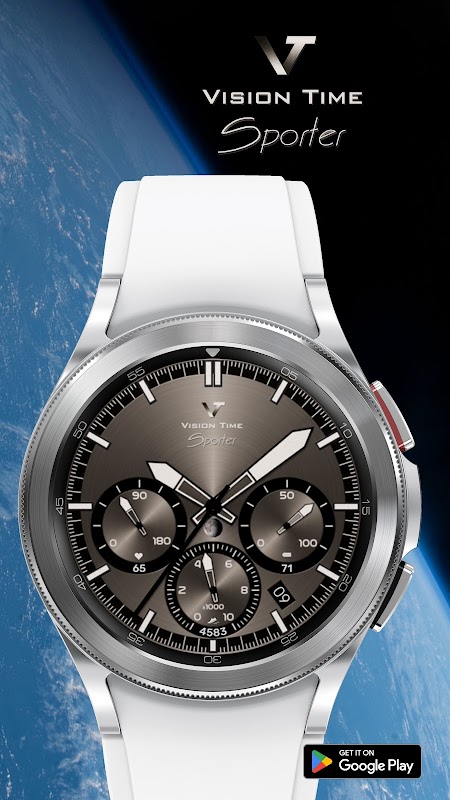 ঘড়ির মুখটি ক্রোনোগ্রাফ হিসাবে স্টাইল করা হয়েছে।