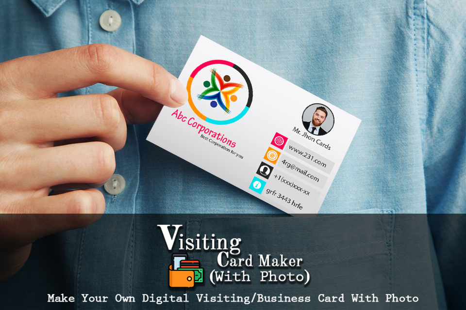 ফটো এবং লোগো সহ আপনার বিনামূল্যে ডিজিটাল ভিজিটিং কার্ড / ব্যবসা কার্ড তৈরি করুন।