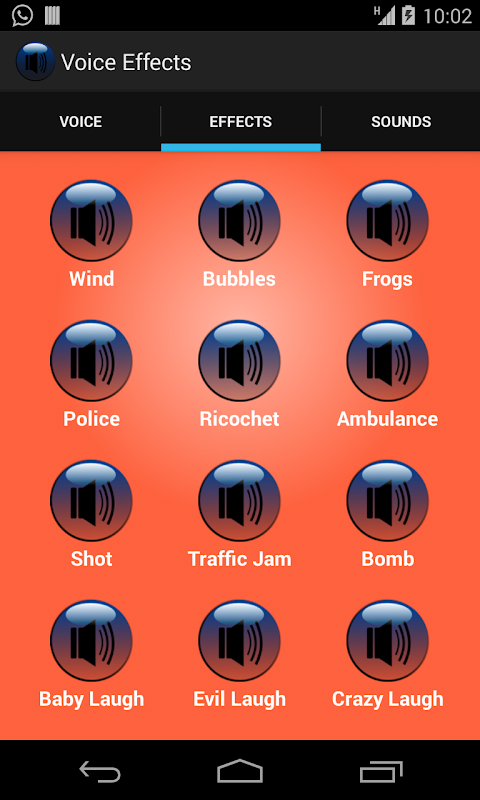 It has 3 recording slots and looping on long click option. Combine your recordings, change voice speed, volume or add sounds effects to modify your voice.