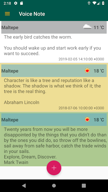 ভয়েস মেমো অ্যাপ্লিকেশন আপনাকে লেখার পরিবর্তে পাঠ্যতে যা বলে তা রূপান্তর করে দ্রুত নোটগুলি গ্রহণ করতে দেয়। এটি পাঠ্যের মধ্যে বক্তৃতা অনুবাদ করতে Google এর বক্তৃতা-থেকে-পাঠ্য প্রযুক্তি ব্যবহার করে। এছাড়াও, ঘড়ির অবস্থান এবং আবহাওয়ার তথ্য স্বয়ংক্রিয়ভাবে আপনার জন্য পুনরুদ্ধার করা হয় এবং আপনার নোট দ্বারা সংরক্ষিত হয়। সুতরাং যখন আপনি পরে আপনার নোটগুলিতে ফিরে তাকান, তখন এটি আপনাকে বর্তমান অবস্থান এবং পরিস্থিতি সম্পর্কে অতিরিক্ত তথ্য দেয়।