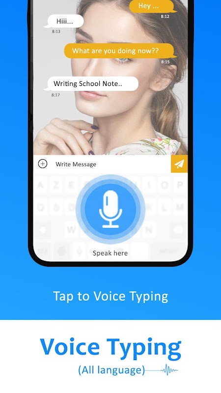 It is a Voice typing in all languages which can be sent as an SMS or copied and pasted into all other apps existing in your device. The app uses Androids built-in Speech Recognizer/microphone to turn speech into text.