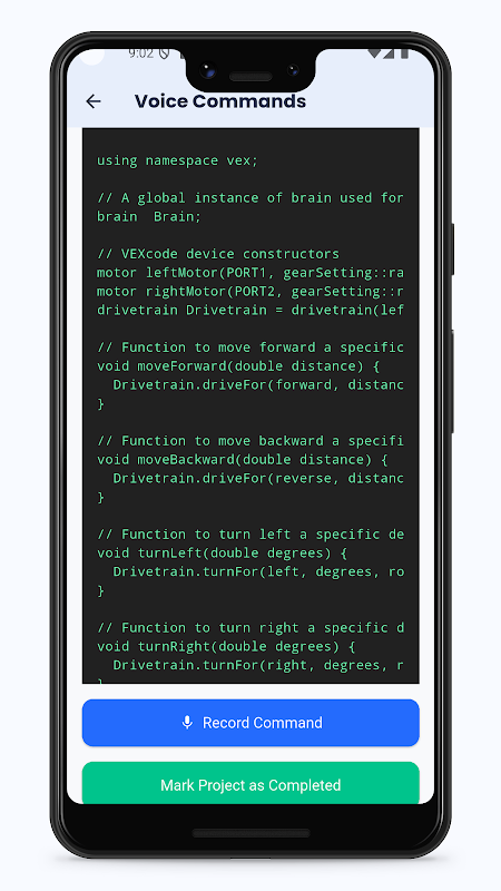 কোড রোবটের সাথে কথা বলুন! এআই-চালিত ভয়েস কমান্ড তাৎক্ষণিকভাবে VEXcode তৈরি করে।