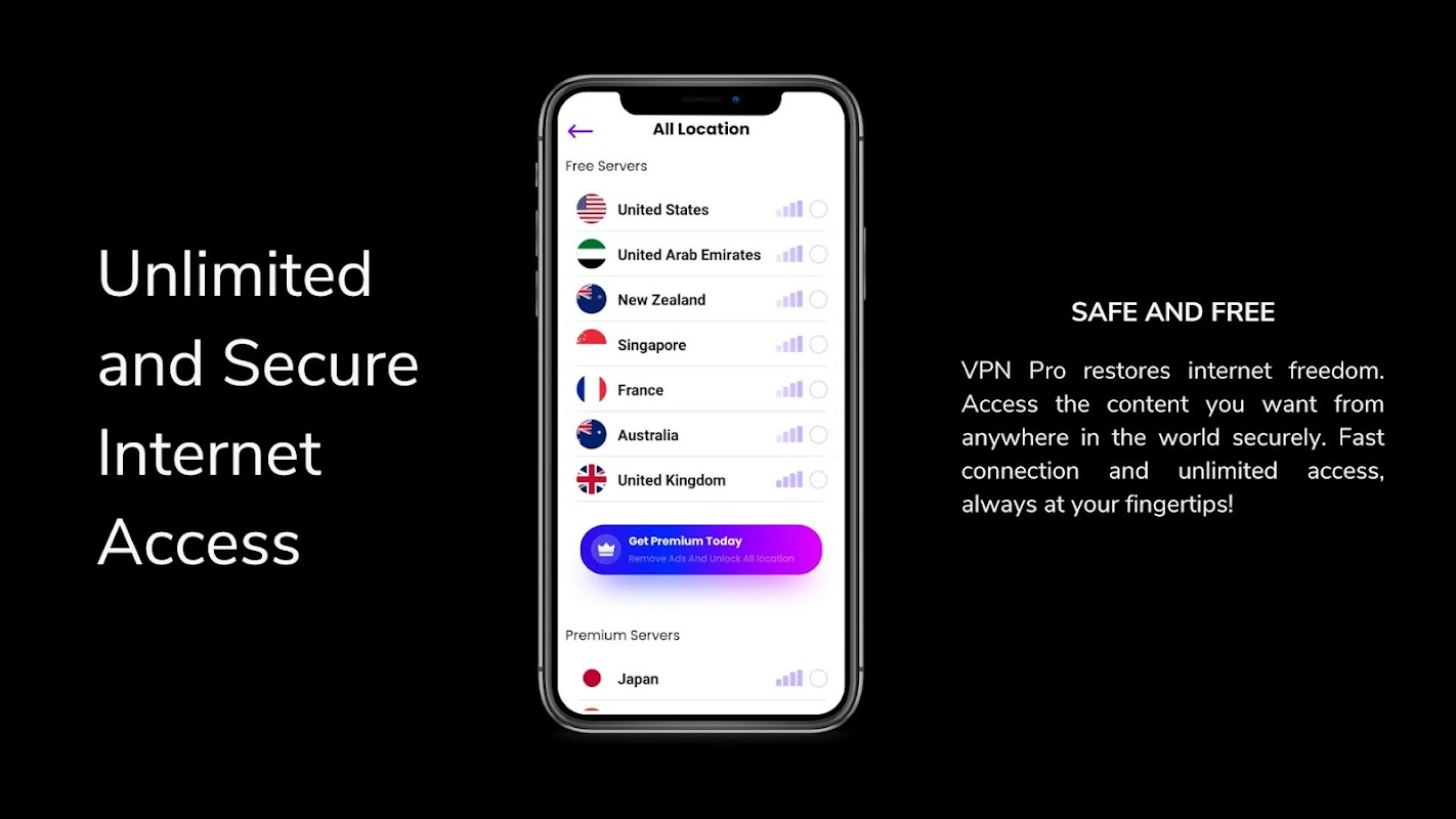 VPN Pro হল একটি ভার্চুয়াল প্রাইভেট নেটওয়ার্ক (VPN) অ্যাপ্লিকেশন যা ইন্টারনেট ব্যবহারকারীদের নিরাপত্তা এবং গোপনীয়তা রক্ষা করার জন্য ডিজাইন করা হয়েছে। এই অ্যাপটি ব্যবহারকারীদের সংবেদনশীল তথ্য, ব্যক্তিগত ডেটা এবং পরিচয় রক্ষা করতে ইন্টারনেট ট্রাফিক এনক্রিপ্ট করে।