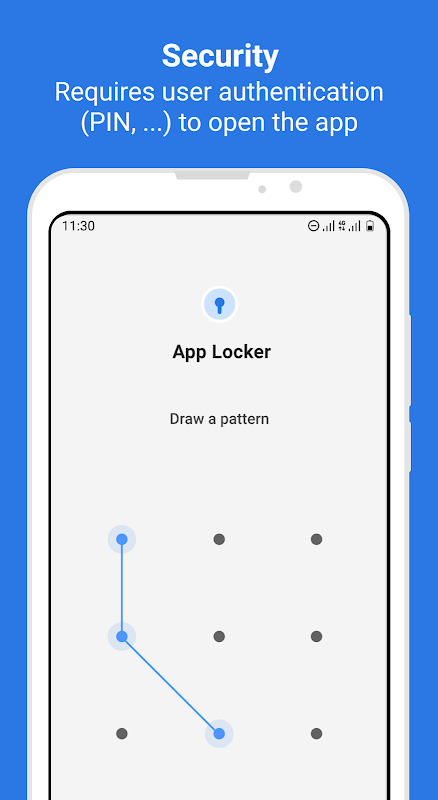 অ্যাপ্লিকেশন খোলার জন্য ব্যবহারকারীর প্রমাণীকরণ (পিন, পাসওয়ার্ড, ফিঙ্গারপ্রিন্ট, ...) প্রয়োজন। অ্যাপ লকারে ব্যবহৃত ব্যবহারকারীর প্রমাণীকরণ ডিভাইসের লকস্ক্রিনের ব্যবহারকারীর প্রমাণীকরণ থেকে আলাদা