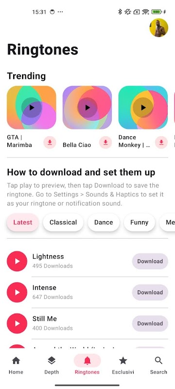 আমরা রিংটোন সেট করাও আগের চেয়ে অনেক সহজ করে দিয়েছি। শুধু নির্দিষ্ট সেকশনটি খুলুন, প্রিভিউগুলো শুনুন এবং ‘ডাউনলোড’-এ ট্যাপ করুন। মাত্র এক ধাপেই আপনাকে সরাসরি সেটিংসে নিয়ে যাওয়া হবে, এবং আপনি সাথে সাথেই সেগুলো ব্যবহার করার জন্য প্রস্তুত!
