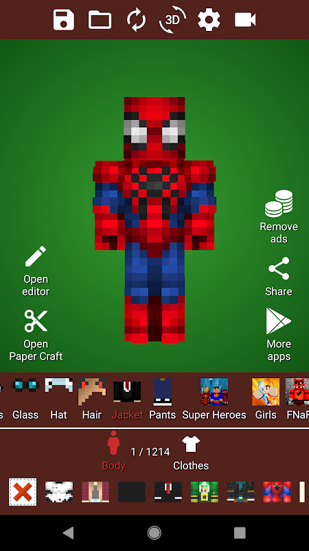 ▶ Preview the created skins in 3D, with the ability to save the screenshot of the 3D model.