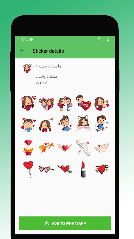 2- After the sticker is downloaded, you'll see a full preview. Click on Add button if you like the sticker pack