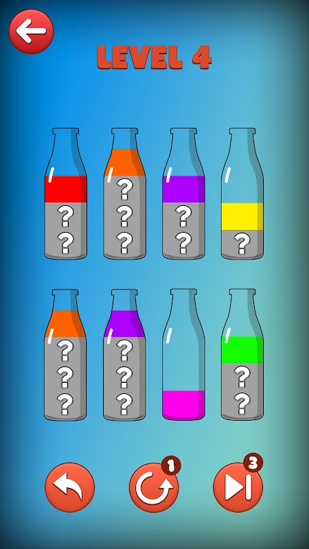 💦 বিভিন্ন রঙের জল ঢালা এবং দক্ষতার সাথে ম্যাচিং বোতলে সাজানোর কাজে ডুব দিন। 🧪