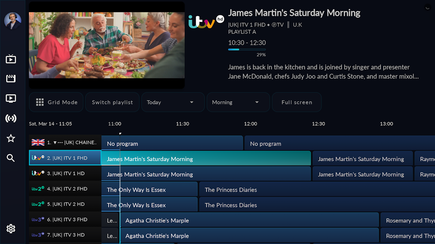 📅 মসৃণ নেভিগেশন সহ ইপিজি (টিভি গাইড) + দুটি ডিসপ্লে মোড: গ্রিড এবং তালিকা