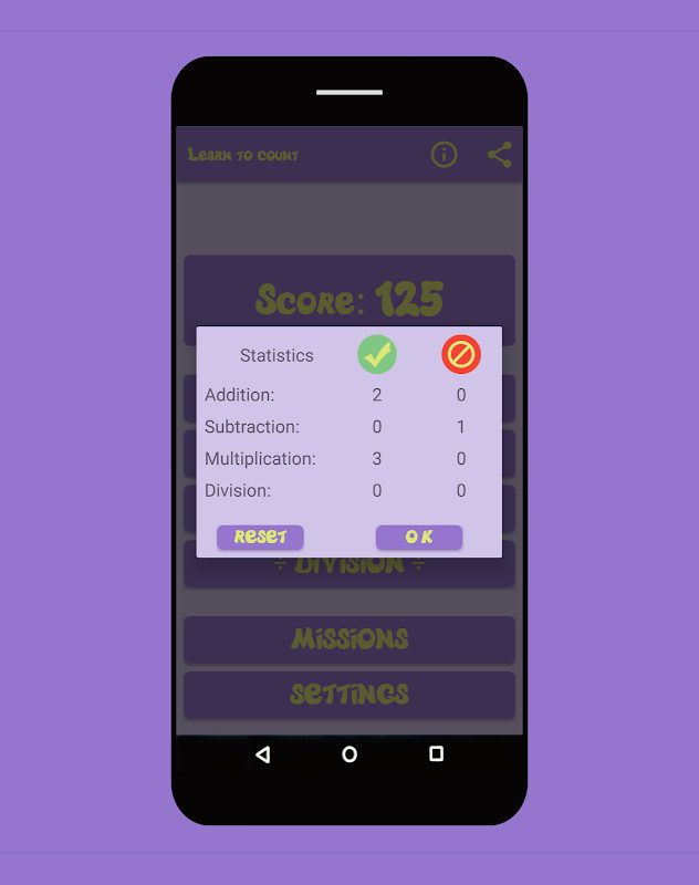 The application has been created to train calculation skills. You can change the level of complexity of the problems yourselves which enables the child to gradually upgrade his/her skills.