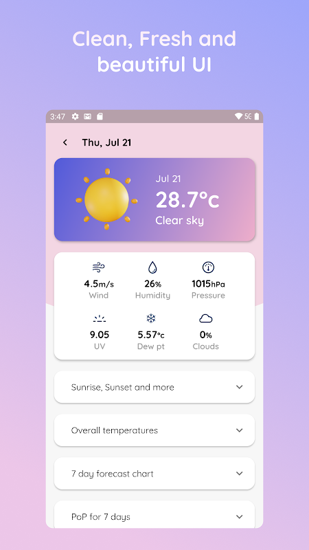 আবহাওয়ার পূর্বাভাস এবং বর্তমান আবহাওয়ার বিশদ সম্পর্কিত একটি পরিষ্কার এবং সহজ পদ্ধতির।
