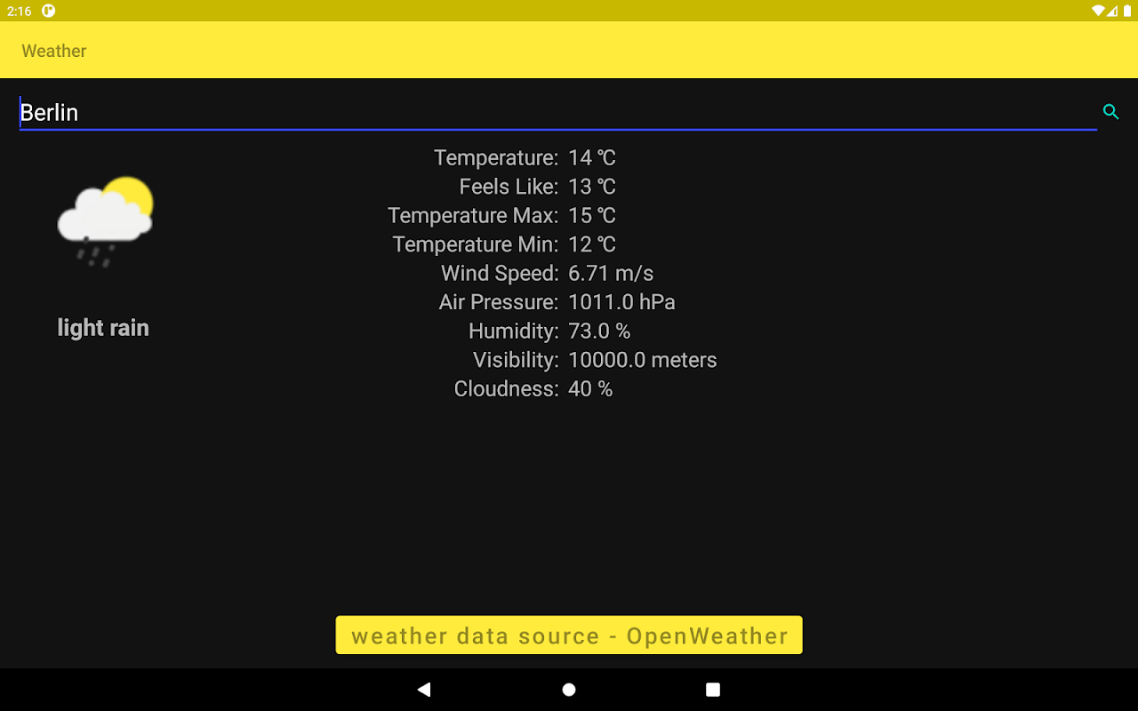 ব্যবহারকারী বিশ্বের বিভিন্ন শহরে আবহাওয়ার সন্ধান করতে পারেন।