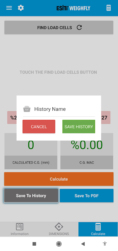 Esit Weighfly হল একটি অ্যাপ্লিকেশন যা সাধারণ বিমান চাকা বা জ্যাক থেকে ওজন পরিমাপ করে বিমানের মাধ্যাকর্ষণ কেন্দ্র (CG) পয়েন্ট নির্ধারণ করার জন্য ডিজাইন করা হয়েছে।