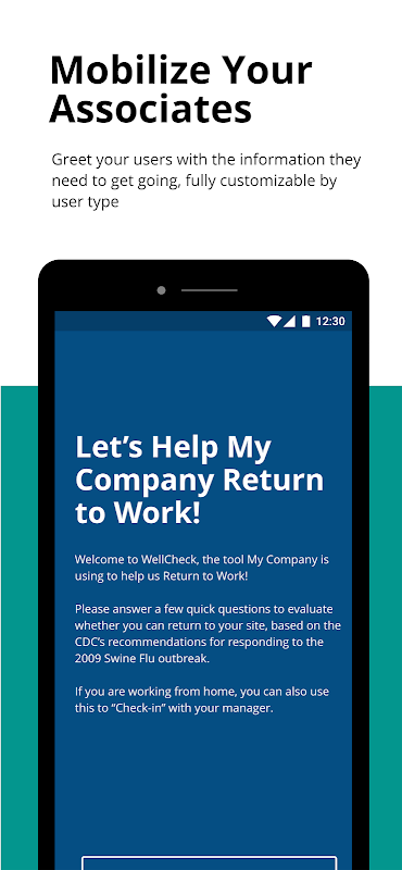 ওয়েলচেক একটি ব্যবসায়িক ধারাবাহিকতা পরিকল্পনার সরঞ্জাম যা তাদের কাজের জায়গাগুলিতে প্রবেশকারীদের তথ্য সংগ্রহের মাধ্যমে প্রাকৃতিক বিপর্যয়, রাজনৈতিক উত্তেজনা বা রোগব্যাধি যেমন বিঘ্নিত হওয়ার পরে ব্যবসায়ীরা আত্মবিশ্বাসের সাথে ফিরে আসতে সহায়তা করে। এটি স্টাফ, দর্শক বা বিক্রেতাদের কোনও সাইটে প্রবেশ করা নিরাপদ কিনা তা নির্ধারণ করতে এবং এটি না হলে কী করা উচিত সে সম্পর্কে তথ্য সরবরাহ করতে সহায়তা করে।