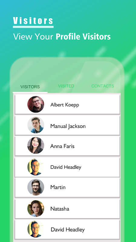 Check Your Profile Visitors with Whats Tracker - Who Viewed My Profile. Check the profiles visited by you with all the contacts enlisted within Whats Tracker - Who Viewed My Profile?