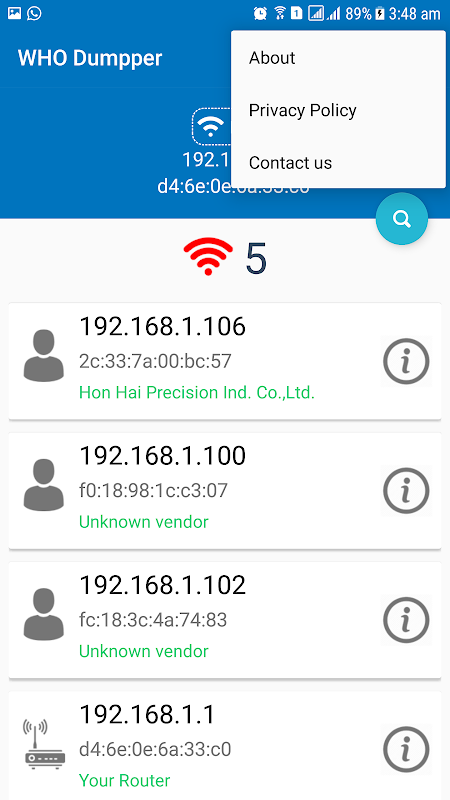 So, if your wireless network is on a limited plan and you believe someone is sending and receiving data without your permission, install this Wi-Fi monitor app for free and look for the suspicious devices connected to your WiFi Dumpper.
