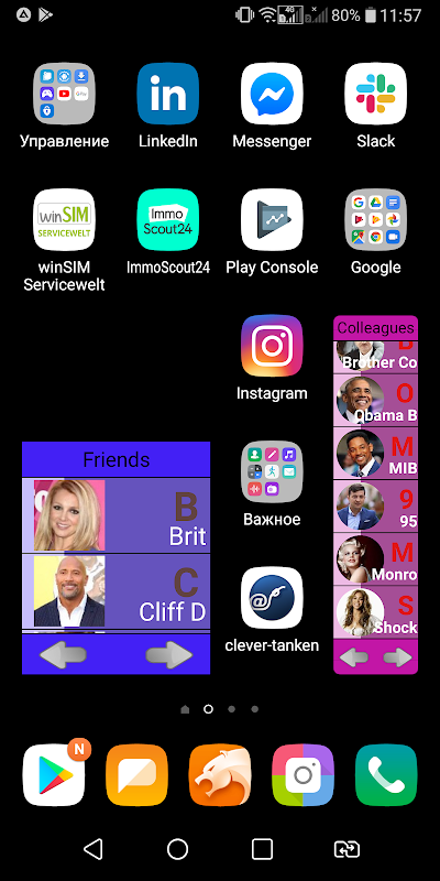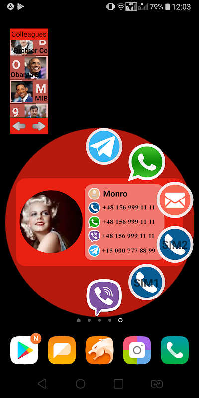 Using our application you can create the widget on the main screen of your phone with different groups not only for quick calls and SMS but also for opening contacts in popular messengers such as WhatsApp, Viber or Telegram (only in case these apps are installed on your phone).