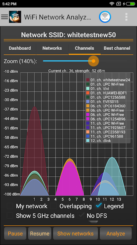 উপলব্ধ ফিল্টার: SSID, ওয়াইফাই ব্যান্ড, চ্যানেলকে ওভারল্যাপিং