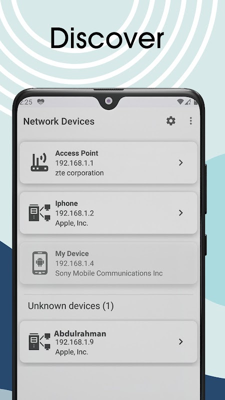 Know more about your network like (Ip address, MAC address, Signal strength, WiFi Frequency, Connection speed, Device vendor, Extremal IP, DNS) and more…