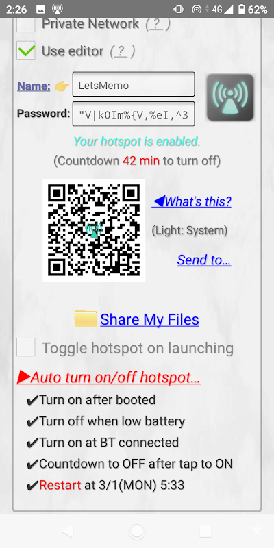 2. কীভাবে র্যান্ডম পাসওয়ার্ড হটস্পট তৈরি করবেন এবং টিথারিংয়ের জন্য QR কোড তৈরি করবেন: https://youtu.be/GtLsX-VaKzA