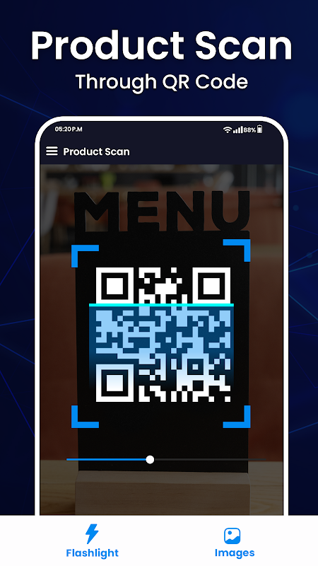 The lightning QR code scanner app for Android devices to scan QR code. It supports all QR/barcode formats!