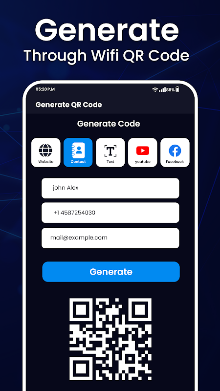 🌈 Scane QR Code for Website URL, Contacts, text, Wifi, Business card, SMS