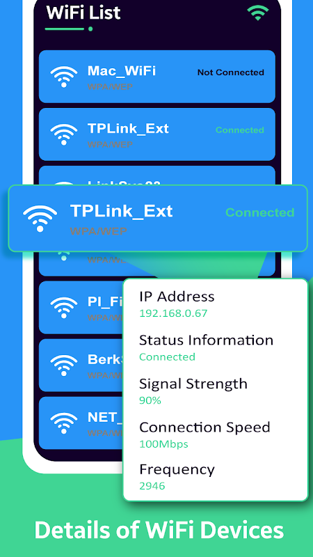 - সমস্ত সংযুক্ত Wi-Fi সংযোগের তালিকা দেখান।