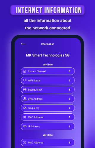 ❇️ এই অ্যান্ড্রয়েড অ্যাপ্লিকেশনটি ব্যবহারকারীদের বর্তমানে সংযুক্ত নেটওয়ার্ক সম্পর্কে তথ্য দেখতে দেয়। এটি বর্তমান আইপি ঠিকানা, সংযোগের ধরন, সংকেত শক্তি, নেটওয়ার্ক গতি এবং অন্যান্য উপলব্ধ ডেটা প্রদর্শন করে। এটি ব্যবহারকারীদের তাদের ওয়াইফাই নেটওয়ার্ক পরীক্ষা করার জন্য একটি ইন্টারনেট গতি পরীক্ষা করার অনুমতি দেয়।