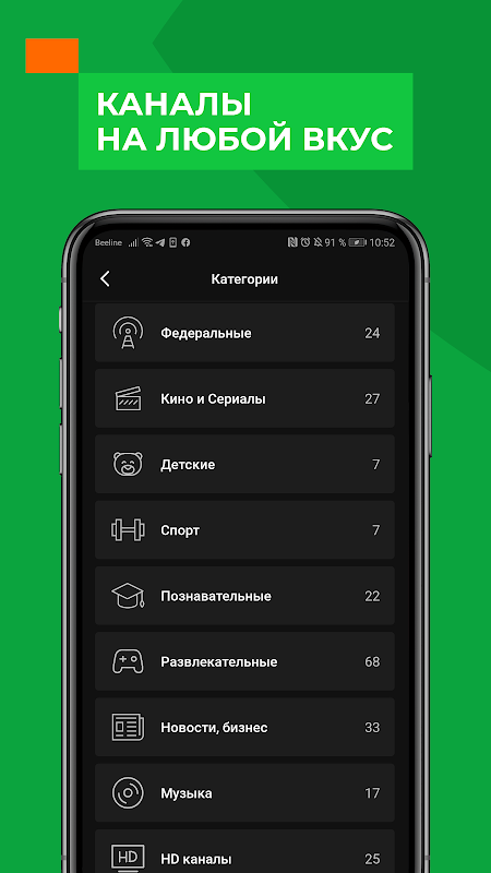Сервис дает бесплатный доступ к онлайн-просмотру до 140 телеканалов: Первый канал, ТНТ, Про Бизнес, Жара HD, Music Box RU, RT HD, Мир 24, Открытый мир, Доктор, Disney, О!Кино и многие другие. Коллекция каналов постоянно расширяется.