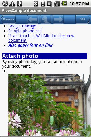 And you can also use the link function to jump to web site, google maps, or other WikiMind document. Attach your photo also available.