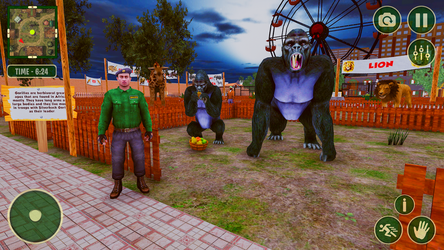 চিড়িয়াখানার কর্মী হিসাবে প্রাণীদের যত্ন নিন এবং তাদের সময়মতো গোসল দিন। এই চিড়িয়াখানার রক্ষক চিড়িয়াখানা সিমুলেটরে সিংহ, চিতা এবং অন্যান্য বন্য প্রাণীর জন্য মাংস , জিরাফ, হরিণ এবং অন্যান্য গৃহপালিত প্রাণীদের জন্য খড় এবং ঘাসের মতো খাবার প্রস্তুত করুন ।