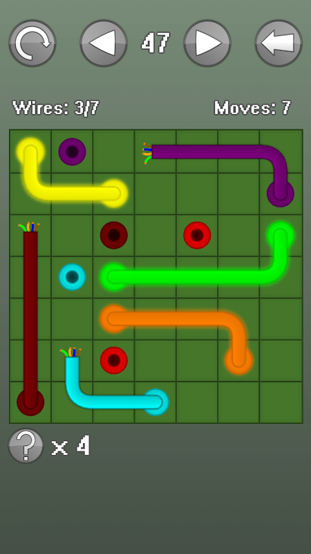 This is a puzzle game where you have to connect the wires to the same coloured points to let the electricity glow and light up the board.