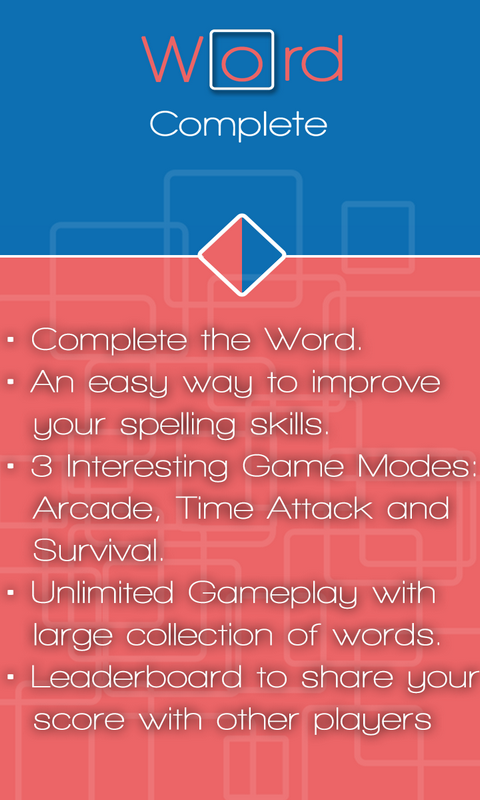 Word Complete let's you to check how great your spelling skills are and also how quickly you can spell the words.