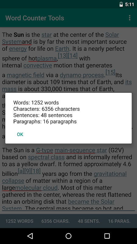- ইংরেজি (প্রকৃতপক্ষে অধিকাংশ ভাষায় আলাদা স্থান দ্বারা শব্দ "" এই অ্যাপ মধ্যে গণনা করতে সমর্থ হয়)