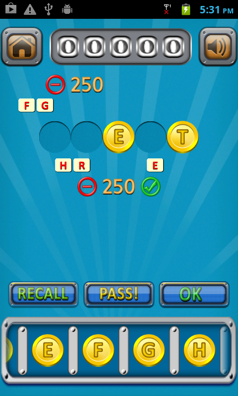 You will be presented with a challenge. Incomplete words will be shown and you need to complete the word using Gold Coins at the bottom of the screen with Alphabets embossed on each of them. Some words will look easy -- while some will not!