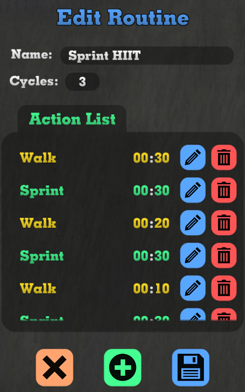 Interval training is the most effective way to burn fat and maximize results. You can incorporate interval training into any workout, cycling, elliptical, treadmill, running, weight lifting, Tabata, whatever exercises you do. The Cardio Training Timer allows you to create groups of workout and rest timers customized specifically for you and the way you want to train. You can set specific colors for each timer and set the number of rounds/cycles for each routine in your workout. And you can use it while listening to music on your phone.