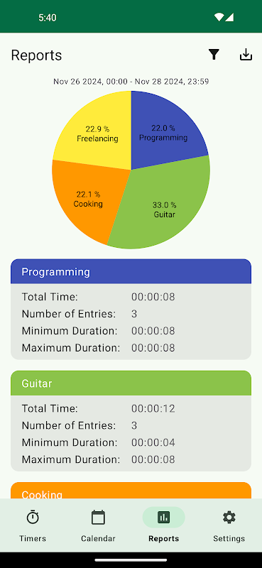 ✔ সব সময় এবং ফিল্টার করা রিপোর্ট।