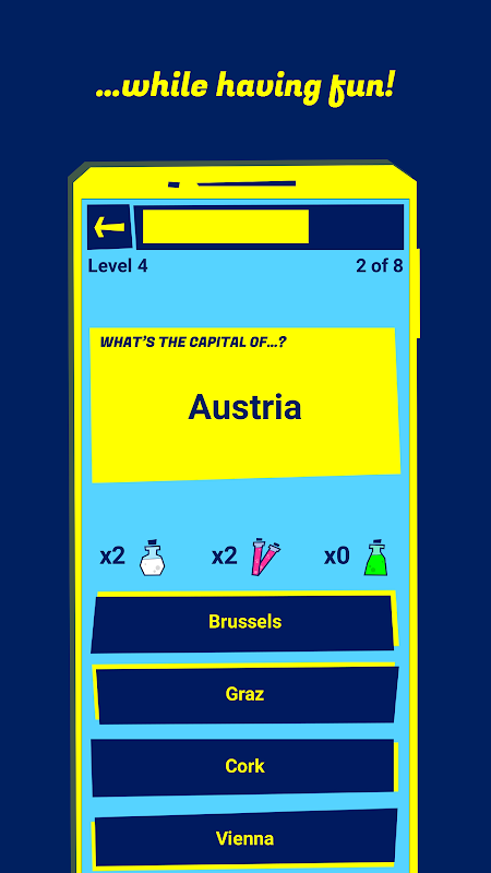 আমাদের ঘিরে থাকা বিশ্ব সম্পর্কে আরও জানতে আপনার প্রিয় গেম মোড এবং ক্রমবর্ধমান অসুবিধা সহ সম্পূর্ণ স্তরগুলি চয়ন করুন। আপনাকে জিজ্ঞাসা করা দেশের রাজধানী অনুমান করার চেষ্টা করুন এবং সময় শেষ হওয়ার আগে উত্তর দিন! এই ট্রিভিয়া কুইজে দেশের রাজধানী, বিভিন্ন গেমের মোড, ভূগোল এবং আরও অনেক কিছু যা বিশ্ব পুঁজি পরীক্ষা হিসাবে কাজ করবে। খেলুন এবং বিশ্বের রাজধানী শিখুন!