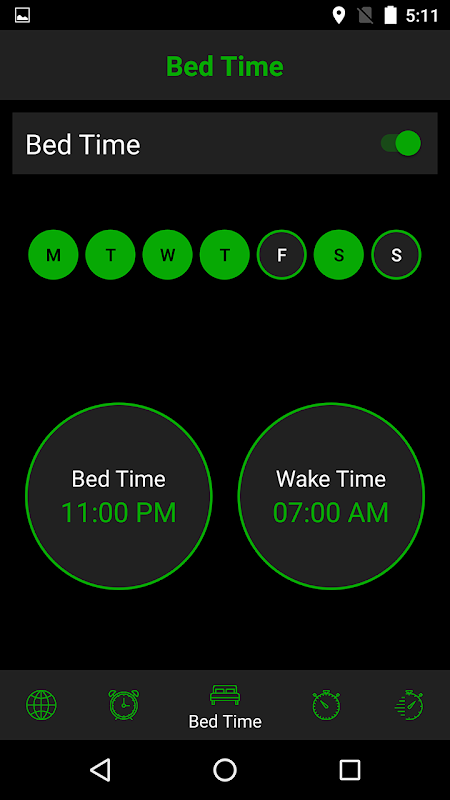 We always hear that sleeping on time is the key for the better health, so set bed time alarm on best time to sleep. The time you set the alarm tone will ring and you came to know that its time to go to bed.
