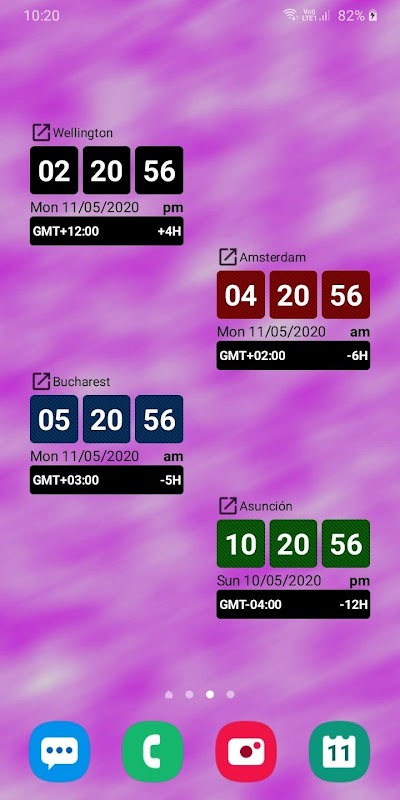 Digital clock on home screen, track multiple time zones.