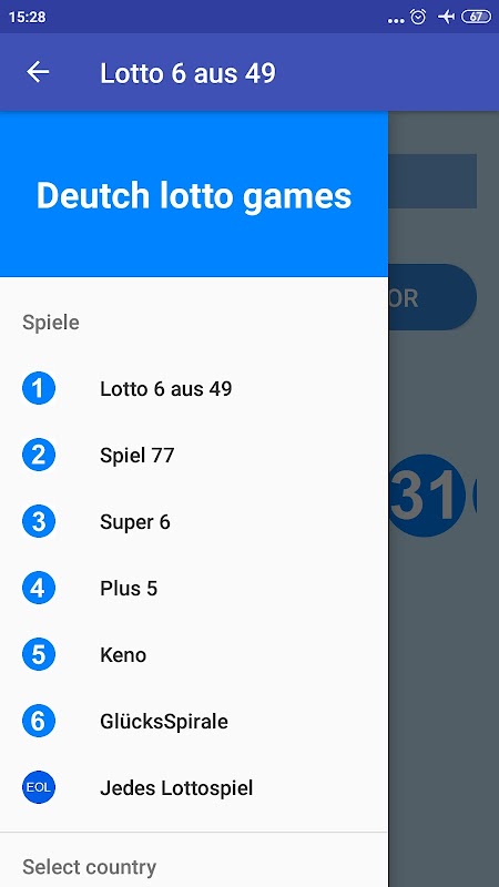 সহজ মেনু থেকে আপনার দেশ বেছে নিন এবং আপনার পছন্দের লটো গেমগুলি নির্বাচন করুন৷