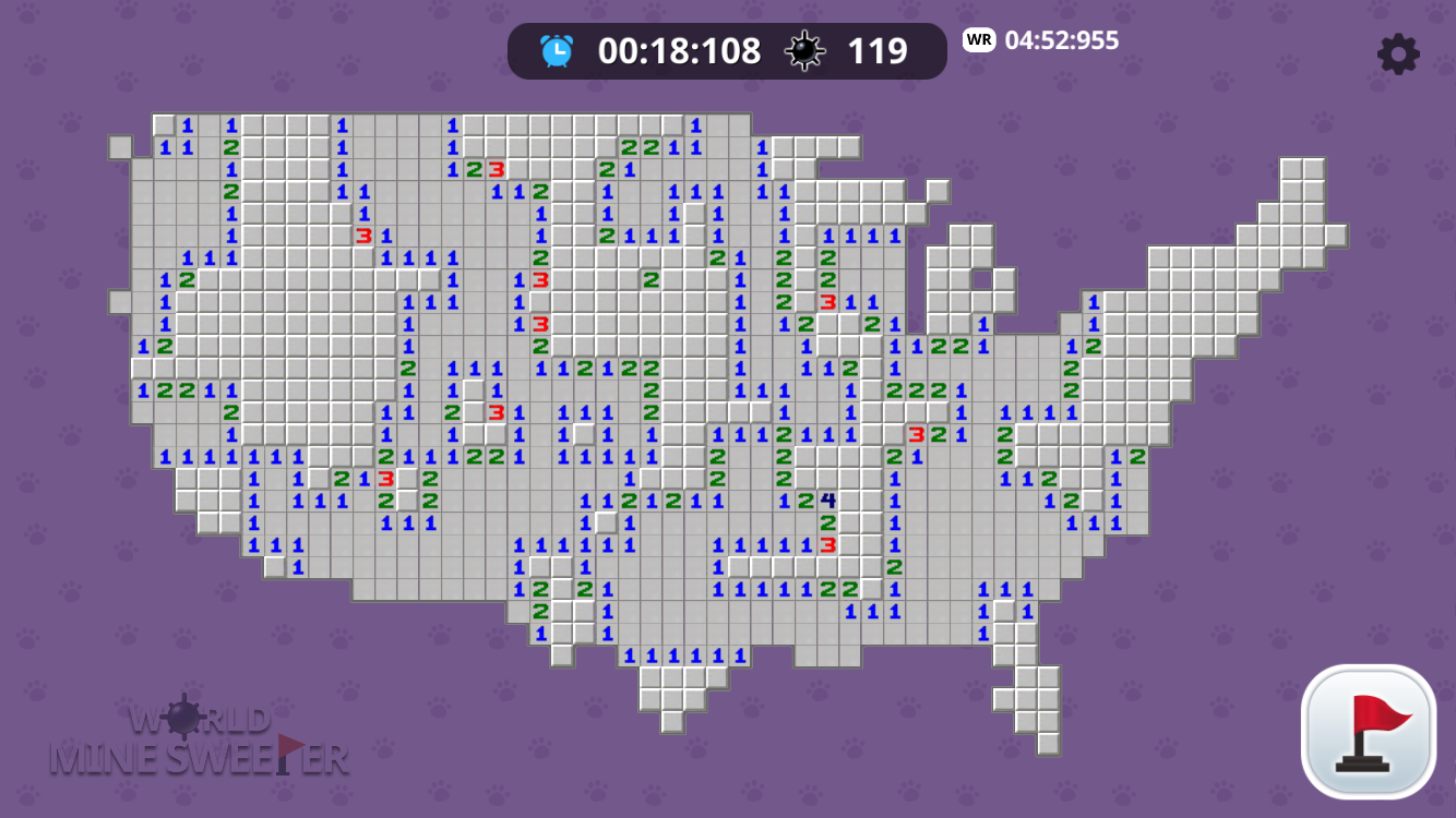 The objective of the game is to clear a country map containing hidden “mines” or bombs without detonating any of them, with help from clues about the number or neighboring mines in each field. The player is initially presented with a world map. The Player can select and choose to play a specific country by touching the country on the map. The game is played by revealing squares of the grid by touching each square. If a square containing a mine is revealed, the player loses the game. If no mine is revealed, a digit is instead displayed in the square, indicating how many adjacent squares contains mines. If no mines are adjacent, the square becomes blank, and all adjacent squares will be recursively revealed. The player uses this information to deduce the contents of other squares, and may either safely reveal each square or mark the square as containing a mine. Find your own country. It’s a great brain teaser.