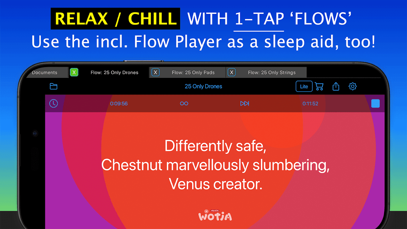 লাইভ জেনারেটিভ মিউজিক এবং MIDI-এর অন-ডিভাইস প্রজন্মের জন্য Wotja একটি শক্তিশালী অ্যাপ/সিস্টেম। অ্যাম্বিয়েন্ট সাউন্ডস্কেপ, টেক্সচার্ড ড্রোন, টেক্সট-টু-মিউজিক মেলোডি/আরপিএস + আরও অনেক কিছু সহজে তৈরি, প্লে এবং এক্সপ্লোর করতে এটি ব্যবহার করুন।