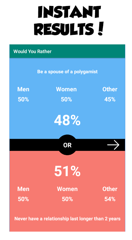 তুমি কোনটা বেশি পছন্দ কর? এটি ট্রিভিয়ার একটি গেম যেখানে আপনাকে দুটি বিকল্পের মধ্যে বেছে নিতে হবে। অনেকগুলি প্রশ্ন অন্যান্য ব্যবহারকারীরা প্রবর্তন করেন।