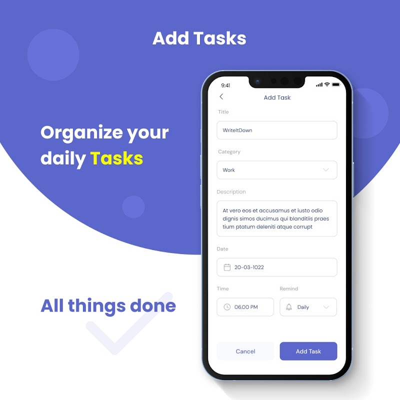 টোডো তালিকা, ফ্রি নোটস, প্রতিদিনের কাজগুলি এবং অনুস্মারক অ্যালার্ম অ্যাপ