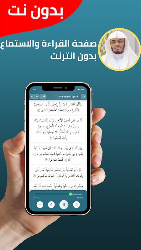 অ্যাপ্লিকেশনটিতে পবিত্র কোরআনের লিখিত পাঠ রয়েছে, যা আপনাকে ইন্টারনেট ছাড়াই তেলাওয়াতকারী শেখ ইয়াসের আল-দোসারির কণ্ঠ শোনার সময় আয়াতগুলি পড়তে এবং সেগুলিতে ধ্যান করার অনুমতি দেয়, যা আপনার কোরআনের অর্থ বোঝার উন্নতি করে। .