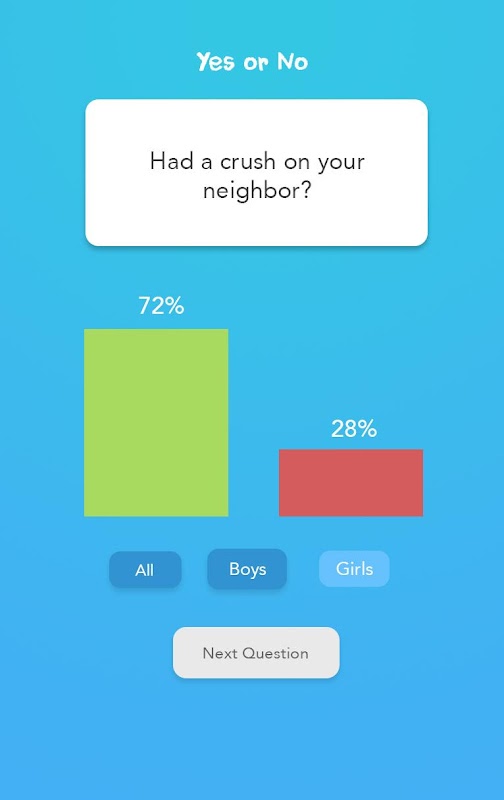 Vote which option you would rather choose - yes or no, then view the stats on what option was the most popular among Boys and Girls